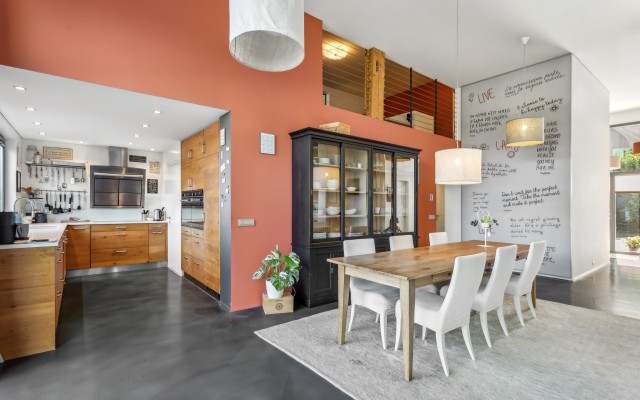 Érigée sur une parcelle de 3'550 m² et distribuée sur 2 niveaux, cette propriété de 9.5 pièces offre un cadre de vie indéniable dans un écrin de verdure, à l’abri des regards.