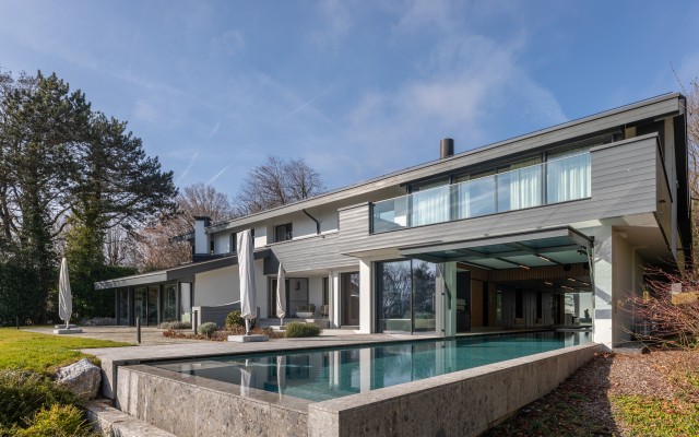 Dès la porte d’entrée franchie, vous serez séduits par un spacieux hall d’entrée. La pièce de réception profite d’une dimension généreuse et garantit une vue époustouflante sur le lac et le jardin. Grâce aux nombreuses baies vitrées, vous profiterez d’une luminosité optimale dans toute la maison et d’une vue époustouflante et exclusive sur le lac et les Alpes depuis pratiquement toutes les pièces.