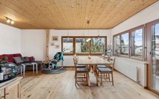 Das Haus überzeugt durch seinen klassischen Chaletstil, grosszügige Raumaufteilung und eine warme, einladende Atmosphäre. Herzstück ist der liebevoll angelegte Garten mit sonnigen Sitzplätzen, altem Baumbestand und viel Grün – ein idealer Rückzugsort für Familien, Naturliebhaber und alle, die Ruhe und Lebensqualität schätzen. Der helle Wintergarten erweitert den Wohnraum und schafft zu jeder Jahreszeit eine harmonische Verbindung zwischen Innen- und Aussenbereich.