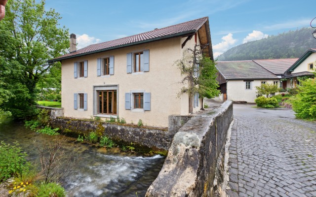 Située dans un cadre bucolique exceptionnel à Môtiers, cette maison individuelle pleine de cachet vous séduira par son atmosphère unique et apaisante. Implantée au bord du Bied de Môtiers, la rivière semble littéralement faire partie de la maison, tant sa proximité crée une sensation de symbiose avec la nature.