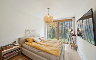 À l’extérieur, la grande terrasse et le jardin soigné offrent un cadre idéal pour recevoir ou simplement se relaxer au cœur de la nature. La proximité immédiate de la forêt garantit calme, intimité et promenades quotidiennes dans un environnement serein.