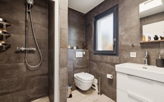- Une salle de bain raffinée, équipée d’une baignoire d’angle et d’une douche à l’italienne