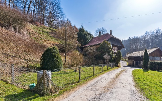 Située entre Tafers et St-Ours, cette maison historique, construite sur une parcelle de 5 949 m², offre une intimité rare au cœur de la nature. Répartie sur trois niveaux, avec six pièces et 160 m² habitables, elle comprend un séjour avec poêle à bois, une kitchenette basique, deux chambres, une grande pièce à aménager, un grenier non rénové, une cave spacieuse et une grange en annexe.