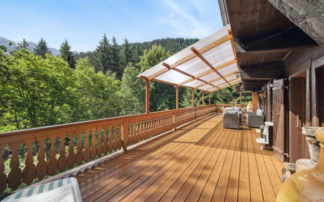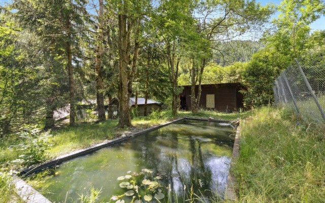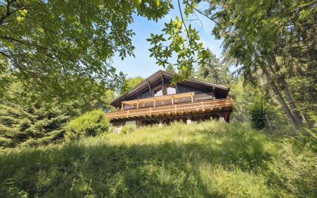 - Vue panoramique sur les Alpes, grande terrasse ensoleillée partiellement couverte, piscine à truites et accès libre à 4 hectares de forêt attenante.