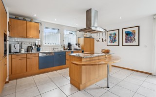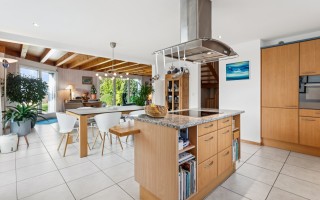 Dès l’entrée, on découvre un rez-de-chaussée baigné de lumière, composé d’un vaste séjour agrémenté d’un poêle suédois et ouvert sur une salle à manger conviviale. La cuisine, moderne et fonctionnelle, profite d’un îlot central et d’un accès direct à l’une des terrasses, créant un lien naturel entre intérieur et extérieur. Une salle de douche complète ce niveau.
