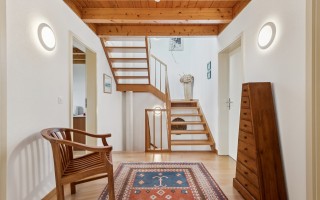 Au cœur d’un quartier résidentiel verdoyant et paisible, cette maison individuelle se distingue par son atmosphère chaleureuse et son emplacement privilégié sur les hauteurs, en bordure de zone agricole.
