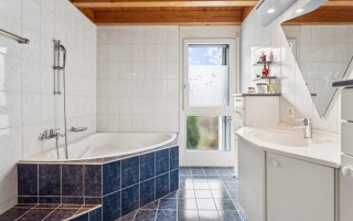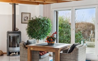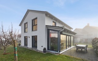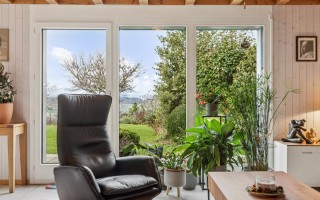 À l’extérieur, deux terrasses prolongent agréablement les pièces de vie. Le jardin paysager, doté d’un gazon posé récemment, invite à la détente.