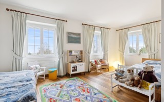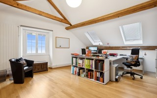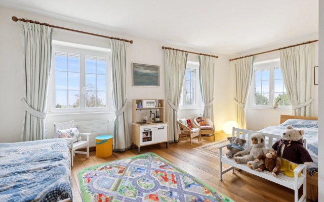 À l’étage, trois chambres dont une suite parentale avec salle de bain, complétées par deux grandes salles de bain supplémentaires, offrent confort et indépendance pour toute la famille. L’attique propose quatre grands espaces polyvalents pouvant servir de chambres, bureaux ou salle de jeux, avec dressing et salle de bain supplémentaire.