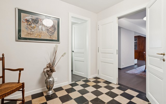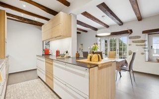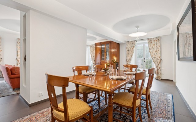 Avec plus de 570 m² habitables répartis sur trois niveaux, cette maison est parfaite pour une famille. Le rez-de-chaussée comprend une entrée principale avec deux WC visiteurs, un vaste salon et salle à manger avec cheminée, une grande cuisine équipée avec espace repas, une entrée séparée pour le personnel, une cuisine d’été et des terrasses avec coin barbecue.