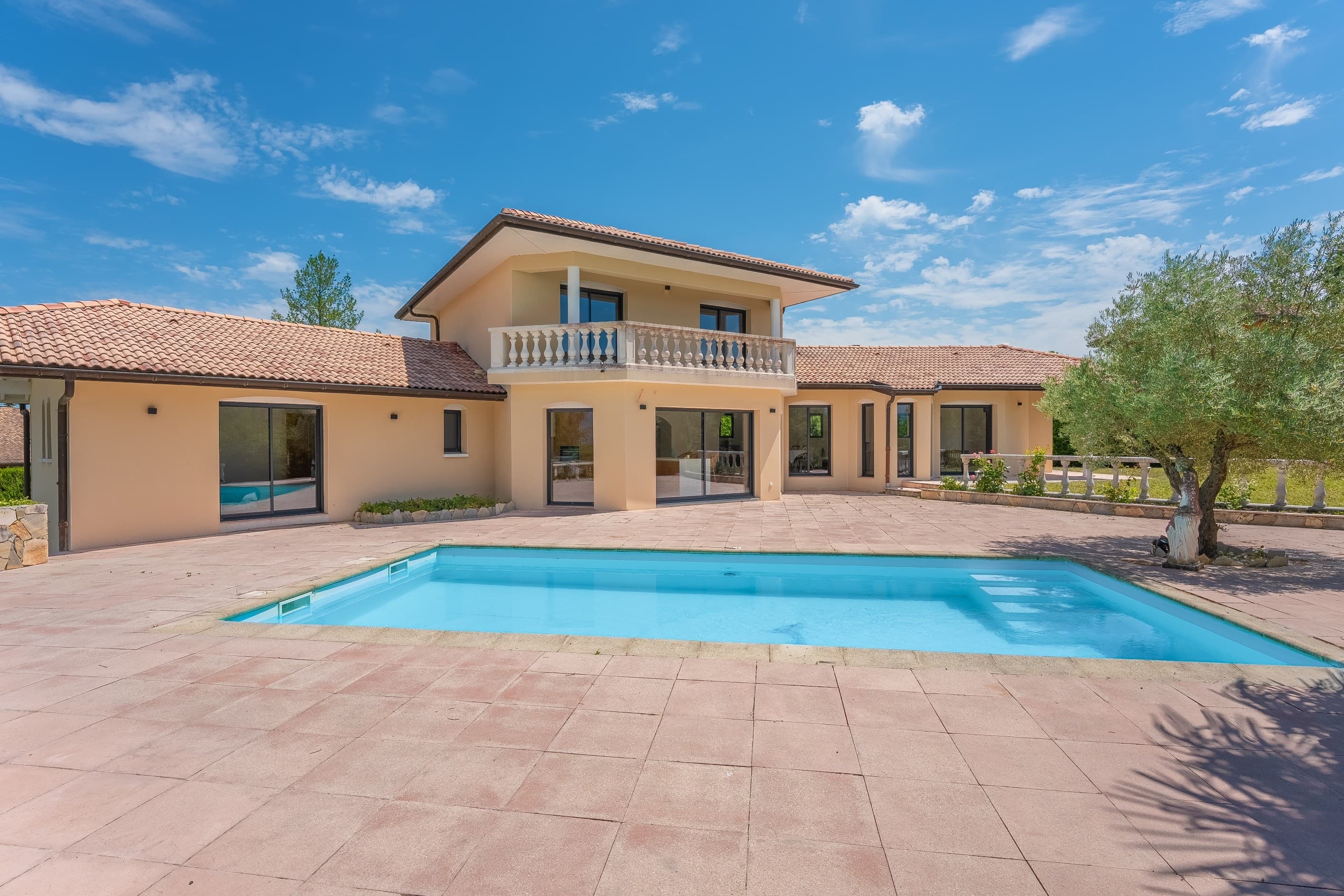 LAC LÉMAN SOTHEBY'S INTERNATIONAL REALTY vous propose : Idéalement située à seulement 25 km du centre de Genève (pont du Mont-Blanc) et à quelques pas du port d’Yvoire, cette élégante villa contemporaine de style néo-provençal, édifiée en 2001 et entièrement rénovée avec des prestations de qualité, séduit par son charme et sa modernité. Dès l’entrée, les volumes généreux et la luminosité séduisent. Le rez-de-chaussée s’ouvre sur un espace de réception d’environ 95 m², où salon, salle à manger et cuisine ouverte fusionnent harmonieusement, bénéficiant d’une belle vue sur le lac. Ce niveau propose également deux chambres de plain-pied, dont une suite avec salle d’eau, ainsi qu’une salle de bains indépendante, une buanderie et un accès direct aux terrasses extérieures. À l’étage, la suite parentale se distingue par son dressing, sa salle d’eau privative et sa grande terrasse exposée plein sud, offrant une vue dégagée sur le Léman. Un bureau, modulable en chambre supplémentaire, vient compléter ce niveau. Le sous-sol total accueille un double garage motorisé, une salle de sport ou de jeux, une salle d’eau et une cave. Édifiée sur une parcelle paysagée de 1 797 m², cette propriété bénéficie d’une piscine tournée vers le couchant et de multiples espaces de détente. Les équipements techniques comprennent un chauffage par géothermie, une cheminée, une VMC récente et des menuiseries en aluminium neuves, assurant confort thermique et performance énergétique (classement C). LAC LÉMAN SOTHEBY'S INTERNATIONAL REALTY, VOTRE EXPERT DANS LA VENTE DE PROPRIÉTÉS DE LUXE AU BORD DU LAC LÉMAN ET SES ENVIRONS.