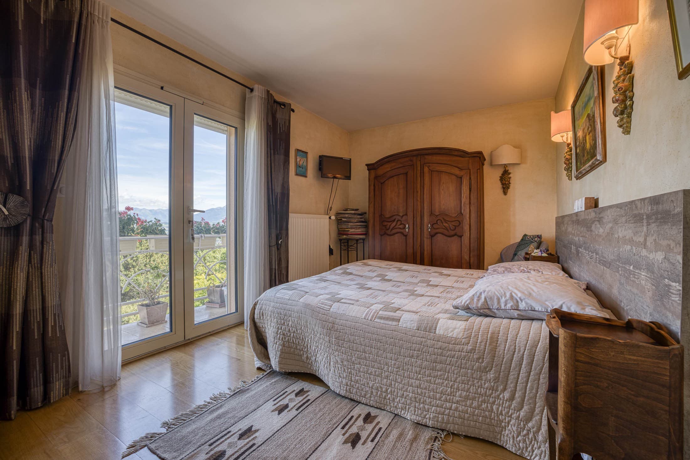 ANNECY SOTHEBY'S INTERNATIONAL REALTY vous propose cette belle maison d’architecte offrant une vue panoramique sur la chaîne alpine du Mont-Blanc. D’une surface d’environ 190 m², elle est implantée sur un beau terrain arboré de 1 898 m² et séduit par son style unique, sa luminosité et sa vue exceptionnelle. Nichée dans un environnement paisible, sans la moindre nuisance, cette propriété conjugue à merveille confort, élégance et qualité de vie. Dès l’entrée, les volumes généreux et la clarté naturelle vous accueillent dans un espace de vie chaleureux comprenant un vaste salon-séjour avec cheminée à insert bois, prolongé par une belle terrasse. Le chauffage au sol dans les pièces principales renforce le confort, tandis que la cuisine ouverte s’intègre avec harmonie à l’ensemble. Le rez-de-chaussée dispose également d’une chambre avec salle d’eau privative et wc. À l’étage, une mezzanine fait office de bureau ou d’espace lecture et dessert une chambre avec salle d’eau et wc, ainsi qu’une magnifique suite parentale dotée d’un dressing, d’une salle de bains, wc et d’un balcon offrant une vue imprenable. Le spacieux sous-sol abrite une chaufferie-buanderie, un atelier, un garage, un cellier, une cave et une authentique cave à vin pensée pour les amateurs de grands crus. À l’extérieur, deux chalets indépendants et entièrement équipés viennent compléter ce bien d’exception. Le premier, d’une surface de 35 m², dispose d’une cuisine, d’un salon, d’une chambre ainsi que d’une salle d’eau avec wc. Le second, d’une surface de 28 m² est un studio spacieux comprenant un petit séjour, une kitchenette et une salle d’eau avec WC. Exploités en gîtes, ces chalets présentent un excellent rendement locatif, les deux chalets ensemble, totalisent 60 semaines de location par an. Ces annexes, tout comme la maison principale, bénéficient d’un système de panneaux photovoltaïques en autoconsommation, offrant une réelle autonomie énergétique. Une propriété rare et recherchée, mêlant harmonieusement nature, sérénité, prestations de qualité et potentiel locatif, avec plusieurs places de parking. ANNECY SOTHEBY'S INTERNATIONAL REALTY, votre expert dans la vente et la location de propriétés de luxe sur le bassin annécien et les Aravis.