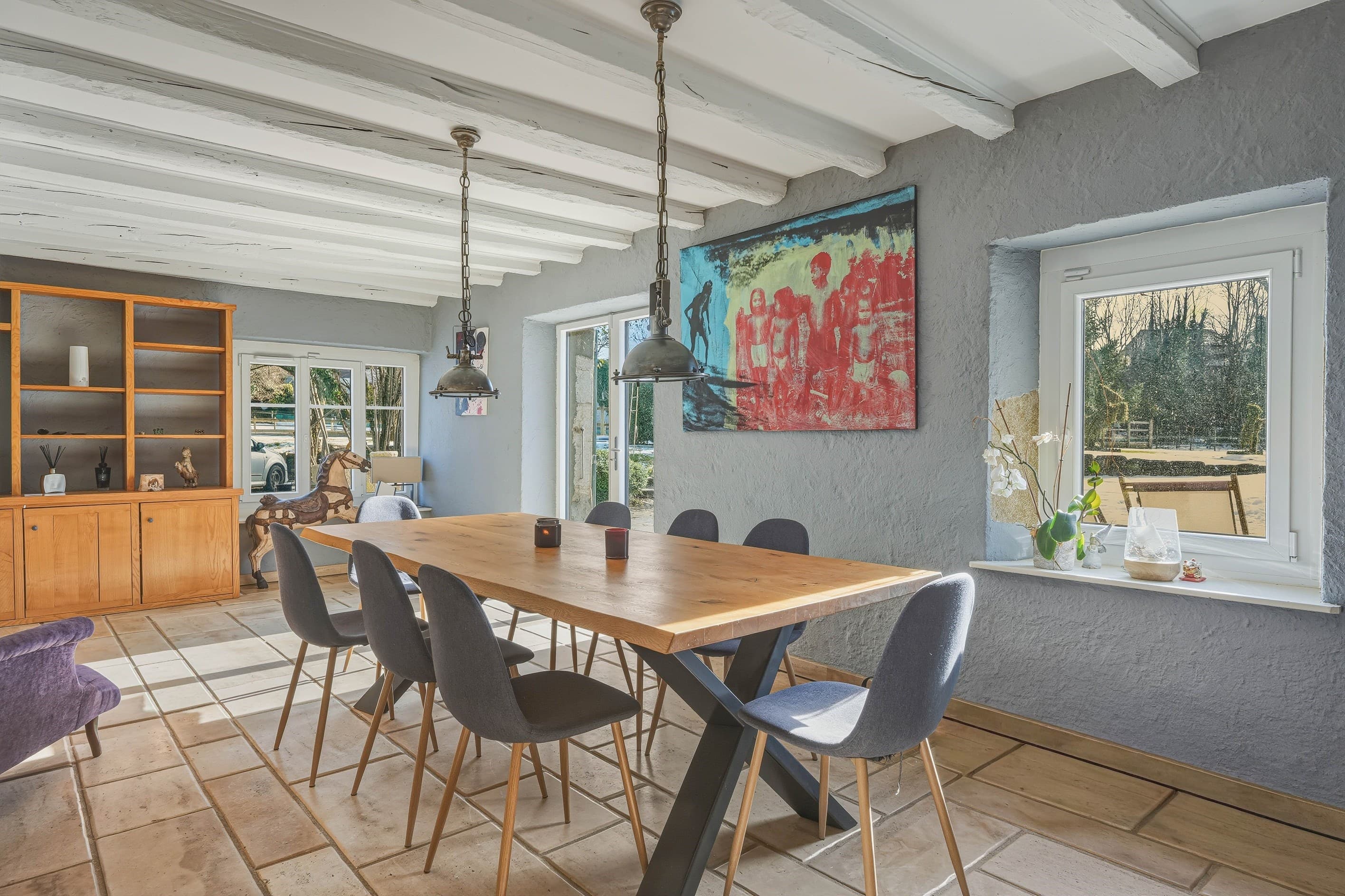 DIVONNE SOTHEBY’S INTERNATIONAL REALTY présente ce domaine équestre à Saint-Genis-Pouilly. À seulement 16 km de Genève, ce domaine bénéficie d’un cadre naturel préservé, offrant une respiration rare et un équilibre subtil entre proximité urbaine et qualité de vie. Édifiée au 19ᵉ siècle, la bâtisse principale développe environ 202 m² habitables. Elle a fait l’objet d’une rénovation soignée, portant notamment sur la toiture, les menuiseries extérieures et les installations techniques, permettant aujourd’hui une lecture contemporaine de volumes authentiques. L’intérieur s’organise autour d’un espace de vie d’environ 72 m², largement ouvert et baigné de lumière. La cuisine, le salon et la salle à manger dialoguent naturellement autour d’une cheminée, véritable point d’ancrage de la maison. L’accès direct à l’extérieur et l’ensoleillement généreux renforcent cette sensation d’ampleur et de fluidité, créant une atmosphère à la fois chaleureuse et apaisante. La propriété s’inscrit sur un terrain d’environ 9 763 m², complété par environ 2 hectares de terrain en jouissance, offrant des perspectives ouvertes et un cadre cohérent avec la vocation équestre du lieu. Deux logements indépendants viennent enrichir l’ensemble. Un logement de fonction en triplex, d’environ 45 m², comprenant cuisine, salon, chambre et salle d’eau. Un duplex indépendant de la bâtisse principale, d’environ 55 m², organisé avec une cuisine en rez-de-chaussée et, à l’étage, un salon, une chambre et une salle d’eau. Il se prête aussi bien à un usage locatif qu’à l’accueil d’invités. Les installations équestres, discrètement intégrées, permettent un usage confortable et fluide : Carrière extérieure de 50 × 35 m, marcheur pour chevaux installé en 2022, écuries comprenant 8 box, paddocks et prairies en jouissance. Les espaces de stockage et de service complètent l’ensemble. La configuration du site offre également la possibilité d’envisager le développement d’équipements complémentaires liés à l’activité équestre. Une propriété rare, à la croisée du patrimoine, de la nature et de la proximité genevoise, pensée pour celles et ceux qui recherchent un lieu de vie singulier, élégant et équilibré. Annonce rédigée par : Sébastien PONTIER EI Agent Commercial RSAC : 482 579 604 NÎMES DIVONNE SOTHEBY'S INTERNATIONAL REALTY, votre expert dans la vente de propriétés de luxe dans le Pays de Gex et le Genevois (Grand Genève). Géorisques Les informations sur les risques auxquels ce bien est exposé sont disponibles sur le site Géorisques : https://www.georisques.gouv.fr