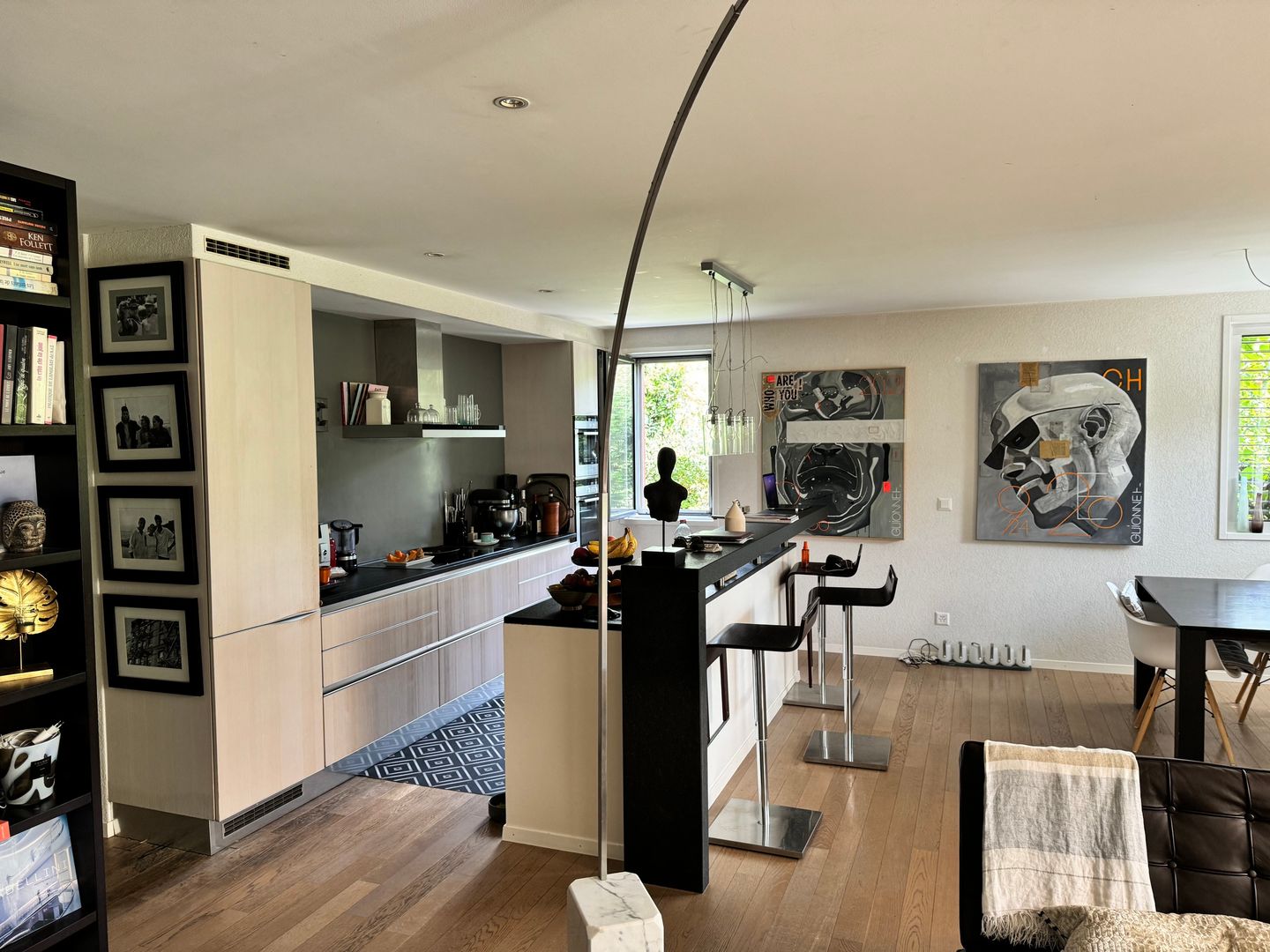 Die Wohnung mit 126 m² Wohnfläche und 166 m² gewichteter Fläche befindet sich im Erdgeschoss und im ersten Stock der Residenz.