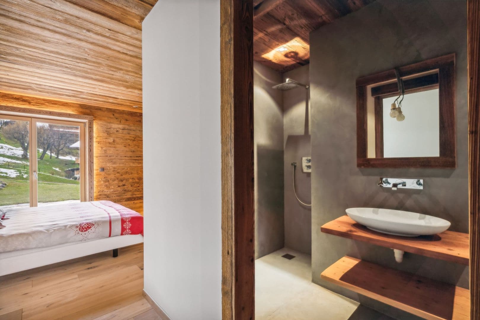Eine seltene Immobilie mit sehr hohem Standard, die raffiniert und umweltfreundlich mit edlen und authentischen Materialien wie Altholz, Naturstein und Schindeln gebaut wurde. Diese Wohnung ist eine harmonische Mischung aus Tradition und Moderne:
