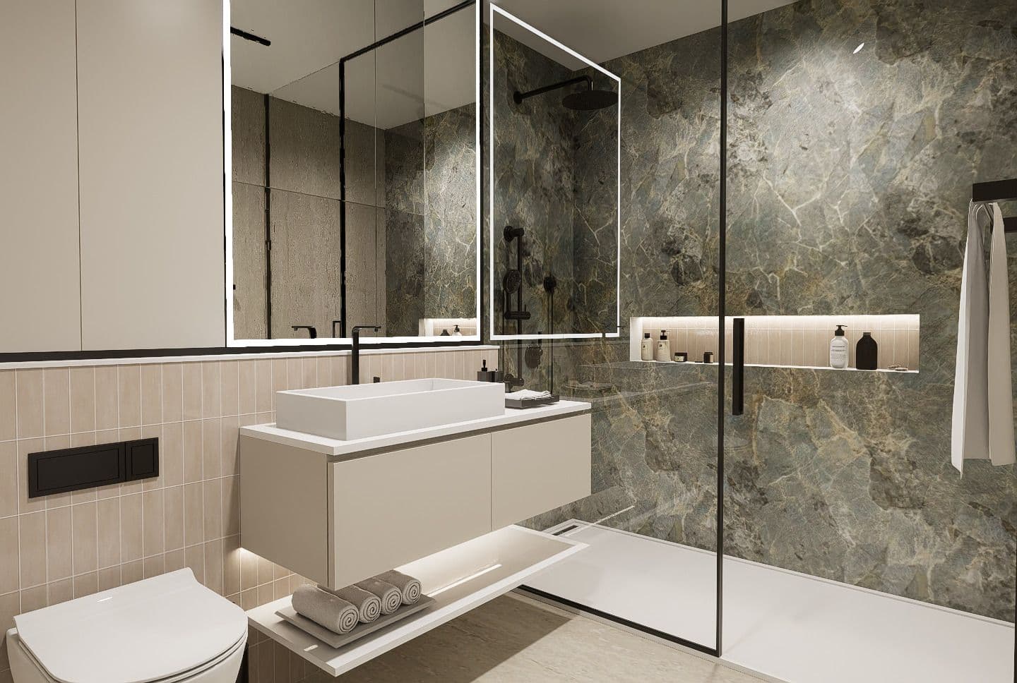 Le projet propose 8 appartements disposés dans un immeuble contemporain. Les typologies varient de 2.5 à 4.5 pièces, avec des surfaces allant de 48 à 100 m², offrant ainsi des espaces de vie généreux et bien agencés, parfaitement adaptés aux besoins des familles comme des jeunes professionnels.
