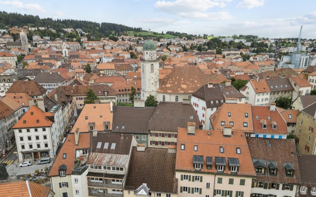 Im Herzen von La Chaux-de-Fonds, einer Stadt, die aufgrund ihres Uhrenurbanismus zum UNESCO-Weltkulturerbe gehört, profitiert das Gebäude von einer zentralen und praktischen Lage.