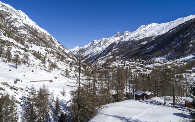 Die Parzelle kann nur zu Fuss erreicht werden, und entlang der Piste dauert es keine 10 Minuten bis zur Bushaltestelle, von wo aus Sie ins Zentrum der Skistation gelangen. Es handelt sich um einen günstigen Standort für naturverbundene Personen, die zwar etwas abgeschieden wohnen aber sich trotzdem die Möglichkeit vorbehalten möchten, am Abend ins Dorf essen oder etwas trinken gehen zu können. Die Lage bietet eine schöne Aussicht auf Zermatt, und ist während den Sommermonaten der Morgensonne ausgesetzt.