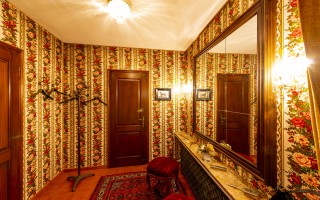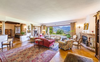 Die Villa bietet auf zwei Ebenen rund 700 m² Wohnfläche und wurde mit hochwertigen Materialien und durchdachten Details erbaut. Der Eingang führt in ein großzügiges, lichtdurchflutetes Wohnzimmer mit Kamin und Barbereich, das auf den Portikus und den Garten hinausgeht. Esszimmer und Arbeitszimmer ergänzen das Hauptgeschoss, während die separate Küche mit Speisekammer über eine Garderobe und ein Gäste-WC verfügt. Das Erdgeschoss umfasst fünf Schlafzimmer und vier Badezimmer, alle geräumig und hell. Der Portikus mit Kamin bietet einen komfortablen Bereich für Mahlzeiten im Freien oder zum Entspannen.