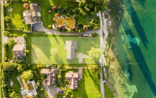 Ein Gästeflügel ermöglicht einen Rückzugsort fernab des Hauptwohnsitzes. Er ist mit einer modernen, zeitgemäßen, aber zeitlosen Küche und einem offenen Wohn- und Esszimmer mit Blick auf den Park ausgestattet.