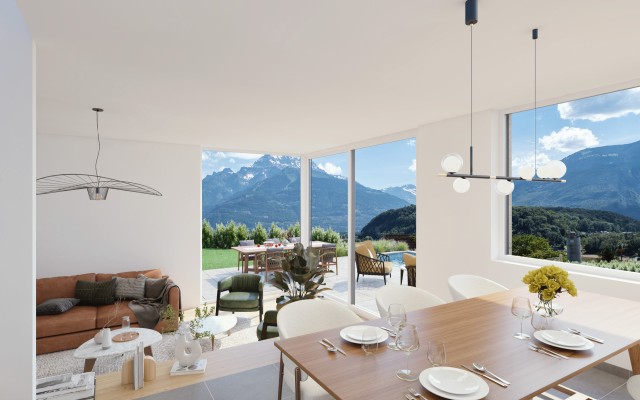 Das neue Projekt Clos d'Arbosson ist nach Südwesten und Nordwesten für die Villen Typ A und nach Süden für die Villen Typ B ausgerichtet, was lange Sonnenstunden und einen außergewöhnlichen Blick auf die Dents du Midi begünstigt.