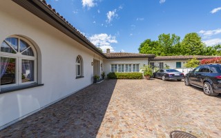 Das Grundstück erstreckt sich über etwa 2.466 m² ebener Fläche. Auf ca. 500 m² Wohnfläche auf einer Ebene präsentieren sich helle, grosszügige Räume mit hochwertigen Materialien. Der sorgfältig gestaltete Garten mit ausgewählten Zierpflanzen lädt mit mehreren Ruhebereichen zum Verweilen ein und bietet dank optimaler Sonneneinstrahlung und uneinsehbarer Lage vollste Privatsphäre.
