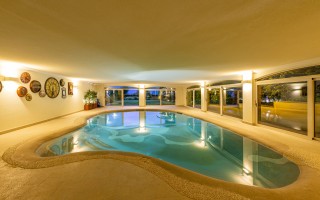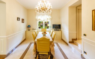 Die Hauptvilla wurde 2013 vollständig renoviert und erweitert. Sie erstreckt sich über drei Etagen, die durch einen internen Aufzug verbunden sind, und bietet eine Wohnfläche von ca. 659 m² sowie zusätzliche 90 m² an Terrassen und überdachten Außenbereichen. Die Innenräume sind bis ins kleinste Detail mit höchster Sorgfalt gestaltet: edles Parkett in den Schlafbereichen, massgefertigte Wandverkleidungen, erlesene Marmore, modernste Haustechnik, ein Alarmsystem mit Videoüberwachung sowie Klimaanlage in allen Räumen.