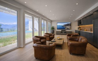 Dank seines einzigartigen Designs, das Holz, Stein und Glas sowie hochwertige Ausstattungen vereint, ist die Atmosphäre sehr angenehm. Dank der Parkettböden aus Massivholz, der großen Fensterfronten und der großen Terrasse mit beheiztem Pool und Jacuzzi bietet das Haus den besten Komfort.nbspDie großen Räume sind dank der Fensterfronten von natürlichem Licht durchflutet und bieten von den verschiedenen Wohnbereichen und Schlafzimmern aus einen spektakulären Blick auf die umliegenden Berge.