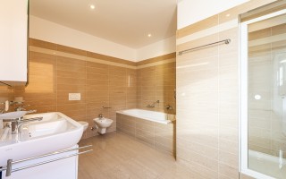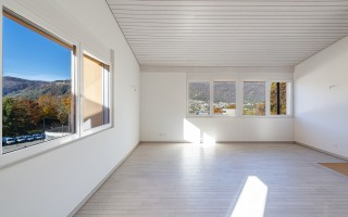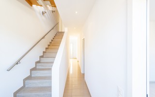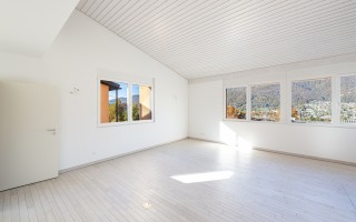 Im ersten Obergeschoss liegen drei Schlafzimmer und zwei Badezimmer mit Dusche. Das Dachgeschoss ist der Hauptschlafsuite vorbehalten: ein grosszügiger Raum mit eigenem Bad mit Badewanne und Dusche, einem separaten Vorraum und einer hellen Galerie, die als flexibel nutzbare Zusatzfläche dient.