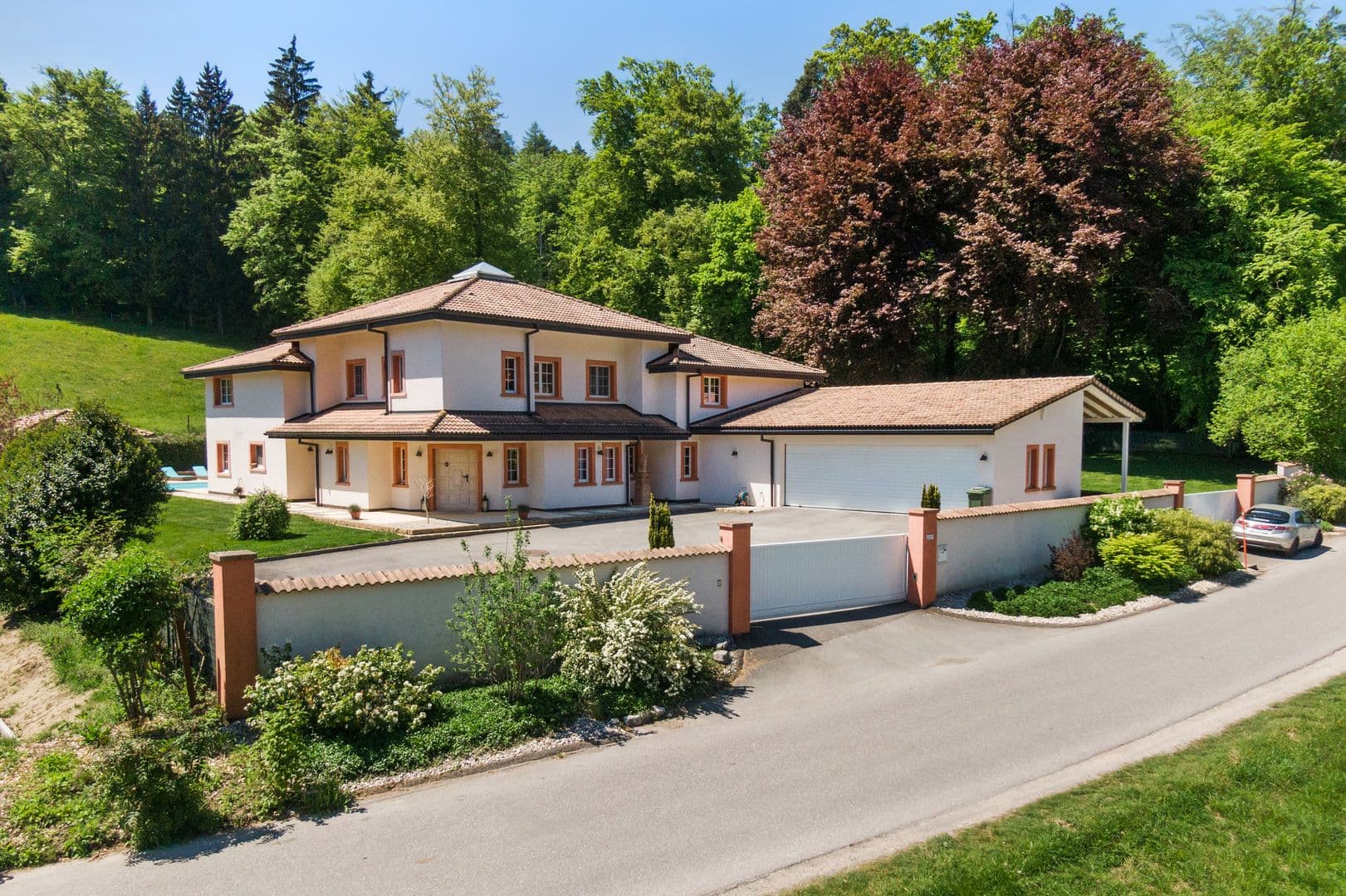 Dieses wunderschöne Anwesen mit Charakter genießt eine privilegierte Lage, umgeben von einem großen, grünen Park am Waldrand, geschützt vor jeglicher Belästigung und garantiert eine perfekte Privatsphäre.