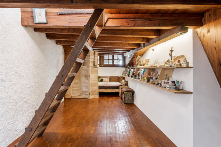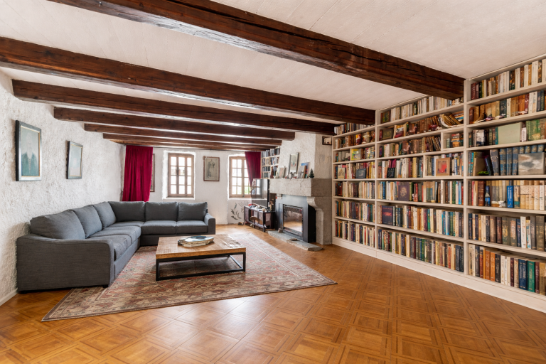 Es erstreckt sich über drei Etagen und wird durch einen schönen Gewölbekeller ergänzt. Es besteht aus vier Schlafzimmern, gemütlichen Empfangsräumen mit alten Parkettböden oder einem alten Molasseofen und einem Kamin. Dieses Haus bietet Ihnen ein authentisches Cachet und garantiert Ihnen eine besondere Atmosphäre vergangener Zeiten.