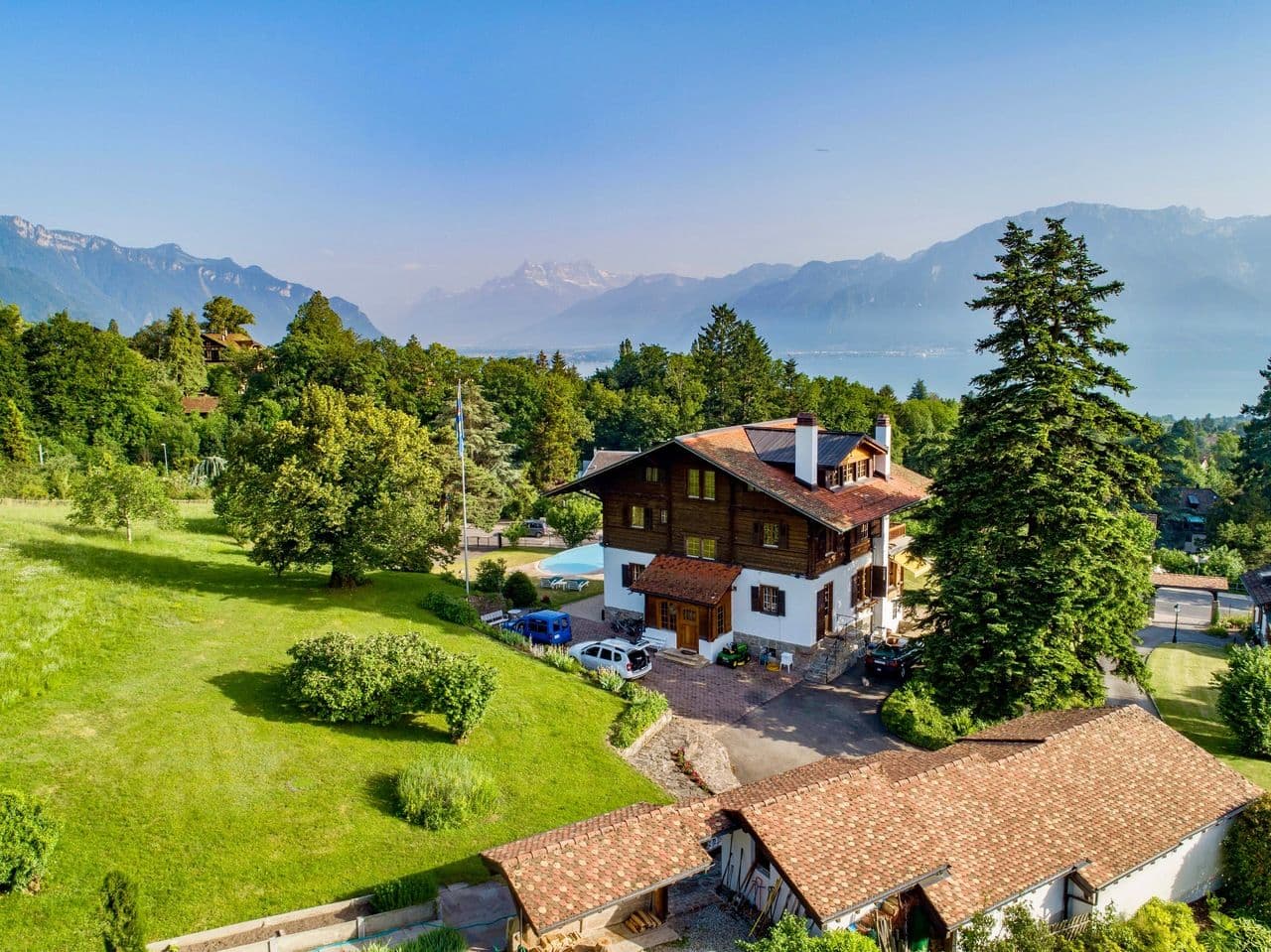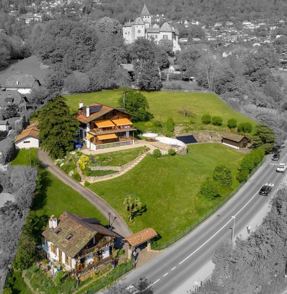 Ausgestattet mit einem privaten Zugangsweg und ohne Gegenüber, genießt das Hauptchalet einen 360°-Panoramablick. 3 überdimensionale Garagen wurden in unmittelbarer Nähe des Anwesens errichtet, wo an ein beeindruckendes Stauraumvolumen gedacht wurde. Eine vierte Garage befindet sich auf dem östlichen Teil des Grundstücks.