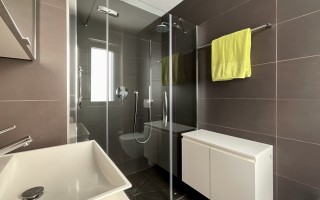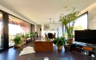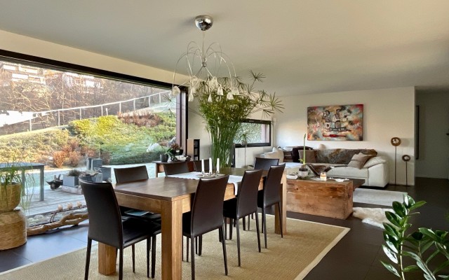 Die 156 m² grosse Wohnung besteht aus einer Eingangshalle, einem Gäste-WC, einem geräumigen Wohnzimmer mit Essbereich und Zugang zur Terrasse auf der einen und zum Garten auf der anderen Seite, einer modernen Küche, einem Hauptschlafzimmer mit en-suite Badezimmer ( Wanne), zwei Schlafzimmern und einem weiteren Badezimmer (Dusche). Die Immobilie verfügt auch über eine private Waschküche (in der Wohnung), einen Keller und zwei Garagenplätze (+CHF 90'000). Eine Sauna mit Panorama-Ruheraum steht ebenfalls zur gemeinschaftlichen Nutzung zur Verfügung.