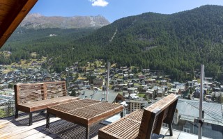 Es zeichnet sich durch seine großzügigen Terrassen aus, die insgesamt ca. 120 m² groß sind und spektakuläre Panoramen auf die umliegenden Berge bieten.