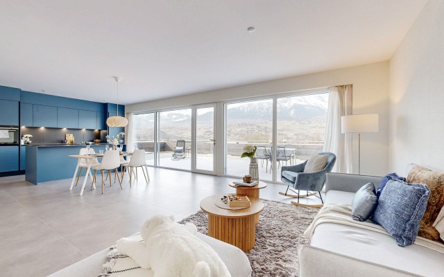 Dieser Neubau mit dem Namen "Résidence Maragnena", in dem Modernität und Nachhaltigkeit harmonisch aufeinandertreffen, befindet sich in idealer Lage in Bramois, in der nahen Peripherie von Sion.