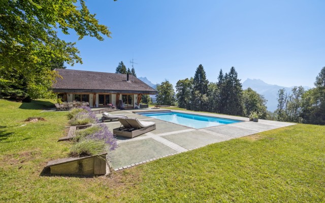 . Dieses geräumige, außergewöhnliche Chalet befindet sich in idealer Lage im Zentrum des Ferienortes Villars-sur-Ollon, nur wenige Gehminuten von allen Annehmlichkeiten, Verkehrsmitteln und internationalen Schulen entfernt. Das Anwesen befindet sich auf einem ebenen Grundstück von fast 2.300 m2 ohne Gegenüber mit einem privaten Zugang und genießt einen herrlichen Blick auf die Alpen, Felder und Wälder. Die Sonneneinstrahlung ist dort von morgens bis abends optimal.