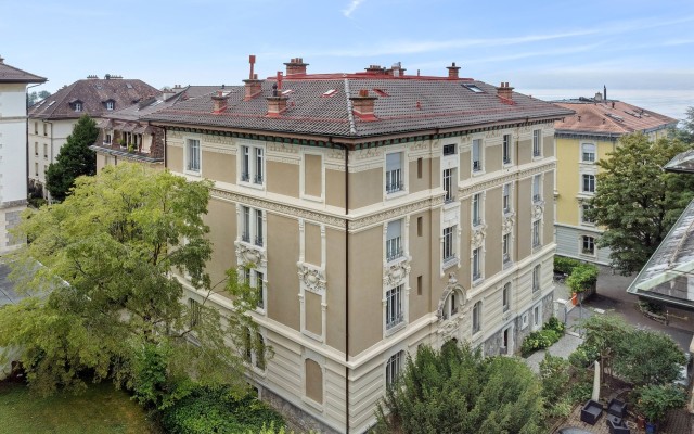 Ideally located in the much-coveted Florimont neighborhood, between Avenue Juste-Olivier and Avenue des Alpes and just steps from the Olympic Museum, this high-end apartment offers generous space and timeless character.  Built in 1905 and meticulously maintained ever since, Villa Olivier is a prestigious four-unit property in the Italian Neo baroque style.