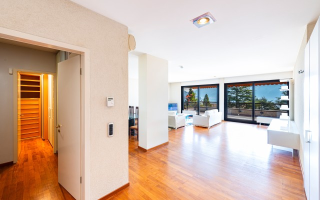 Located in a commanding position in Lugano, this refined 4.5-room apartment is for sale within the exclusive “Villa Loreto” residence. Nestled in an expansive private park of 8,294 sqm and just 30 metres from the lakefront, the property enjoys a privileged setting with sweeping views, glimpses of the lake, and optimal sunlight exposure thanks to its east-facing orientation.