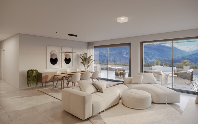Nested on the heights of Savièse, "Le Panoramic" magnificently lives up to its name: an exceptional residence offering spectacular views of the majestic surrounding mountains. This upscale real estate project combines light, space and comfort, creating a harmonious living environment in a privileged setting.