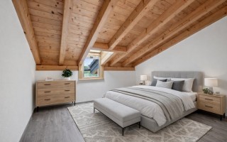 This property offers three good-sized bedrooms, including a master suite with bathroom. A further shower room with WC is located close to the other two bedrooms. The very wide entrance hall features built-in wardrobes and allows intelligent distribution over the day and night areas.
