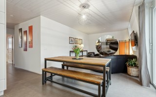 Les espaces de vie se composent d'un séjour lumineux et cosy. La cuisine est aménagée, ouverte sur une salle à manger/séjour confortable et accueillante.