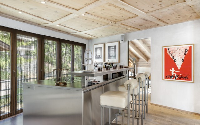 An impressive penthouse, designed by Heinz Julen, with a total of six bedrooms, occupying the top three floors of an apartment building. A private elevator leads directly from the ground floor to the apartment.