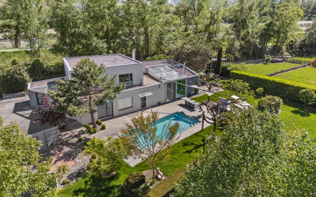 In an unspoilt natural setting, this elegant, contemporary 7.5-room villa will captivate you with its generous volumes, luminosity and serene atmosphere. Set on a magnificent wooded plot, it boasts panoramic mountain views and an interior layout designed for comfort and harmony with the outdoors.