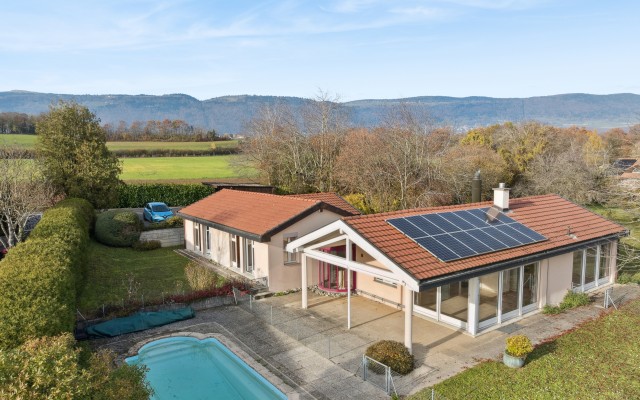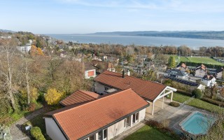 5.5-room architect-designed detached house with swimming pool, offering exceptional views of Lake Neuchâtel, nestled in an idyllic setting on the heights of Grandson.