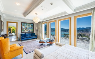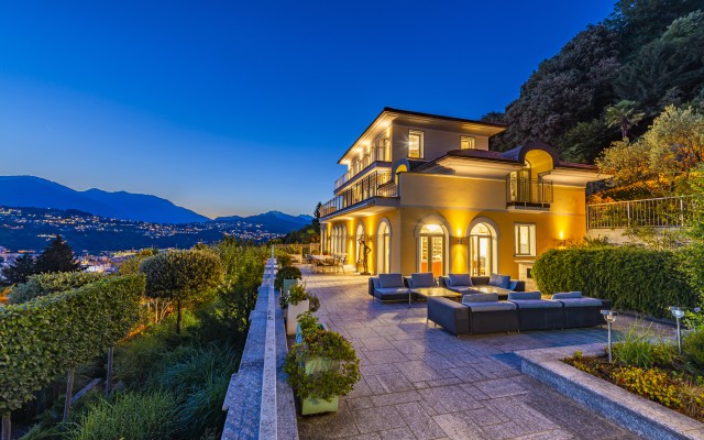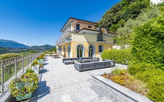 Renovated and extended in 2014, Villa Guarda is in impeccable condition. The careful selection of high-quality materials and finishes gives the house a refined, contemporary style. The large windows and high ceilings flood the spaces with natural light, enhancing the spaciousness of the rooms. Spread over five levels, the villa offers a total surface area of approx. 1007 sqm. The interiors integrate harmoniously with the exteriors: a spacious panoramic terrace, ideal for convivial moments, is flanked by balconies and a magnificent garden. The garden, enriched by several thematic niches, guarantees private and relaxing corners in a context of absolute tranquillity.