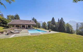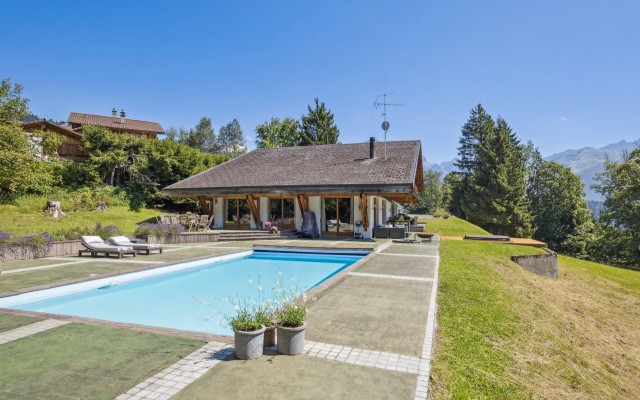 Ce spacieux chalet d'exception est idéalement situé au centre de la station de Villars-sur-Ollon à quelques minutes à pied de toutes les commodités, des transports et des écoles internationales. Implanté sur une parcelle plane de presque 2'300 m2 sans vis-à-vis avec un accès privatif, la propriété bénéficie d'une magnifique vue sur les Alpes, les champs et les forêts. L'ensoleillement y est optimal du matin au soir.