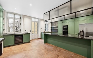 Face à cet espace, la cuisine contemporaine, dotée d’équipements haut de gamme et de finitions irréprochables, séduira les amateurs de gastronomie comme les professionnels. Sa configuration a été pensée pour accueillir aisément un chef à domicile, offrant ainsi la possibilité d’expériences culinaires d’exception.