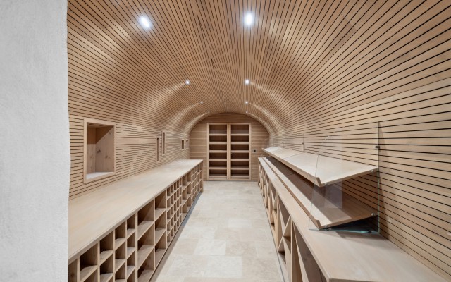 Au sous-sol, une somptueuse cave à vin, conçue pour les amateurs de bons crus ne vous laissera de loin pas insensible de part sa conception et son style.