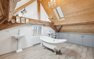 La ferme comprend plusieurs chambres, dont une somptueuse chambre en suite avec salle de bain privative, offrant un espace intime et raffiné.