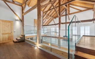 Les rénovations réalisées ont su préserver le caractère authentique de la ferme, avec des matériaux de standing et un design soigné. Les grands espaces ouverts, les hauts plafonds et les fenêtres généreuses créent une ambiance lumineuse et spacieuse.
