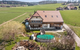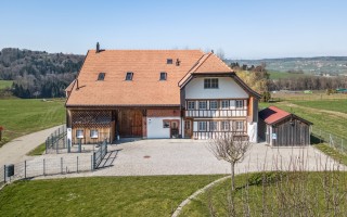 Construite en 1740 sur une parcelle de 2'095 m², cette ferme de plus de 430 m² habitables a été entièrement rénovée en 2015 puis est distribuée sur trois niveaux. Elle dispose d’une cheminée en molasse et d'un fourneau dans la partie séjour / salle à manger mais également d’un poêle dans la partie Sud de la propriété.